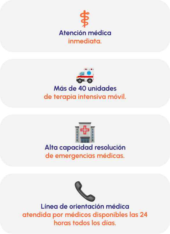 Estamos preparados para responder en los momentos que más importan, con unidades de terapia intensiva móvil, profesionales médicos y avanzada tecnología que garantiza una atención inmediata y eficaz ante cualquier emergencia médica.